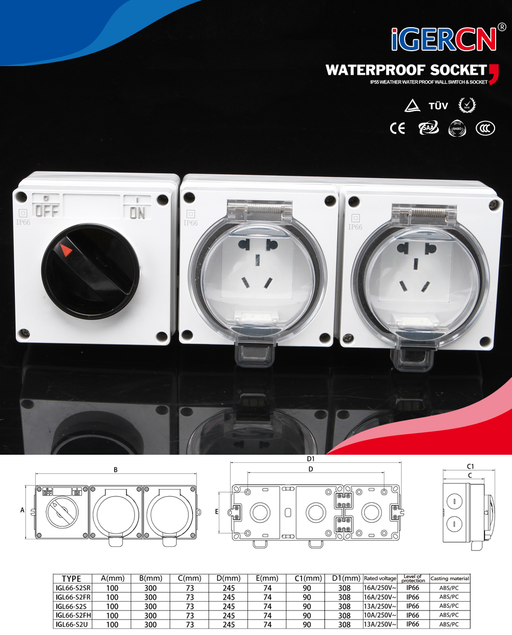 IGL66-S2FR(1Gang Switch 2Gang Socket 16A-250V~)