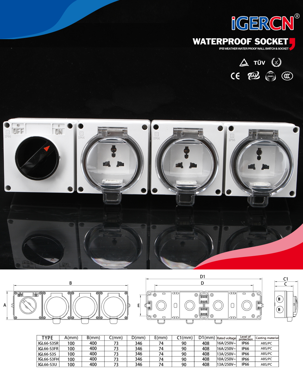 IGL66-S3U(1Gang Switch 3Gang Socket 13A-250V~)