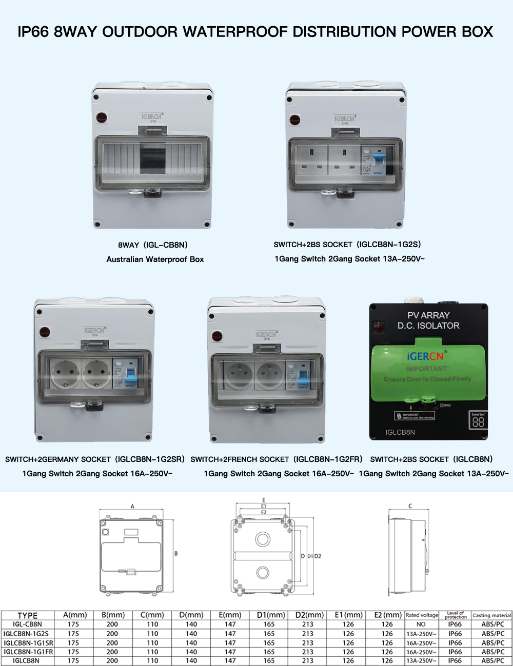 IGLCB8N-1G2FR(1Gang Switch 2Gang Socket 16A-250V~)
