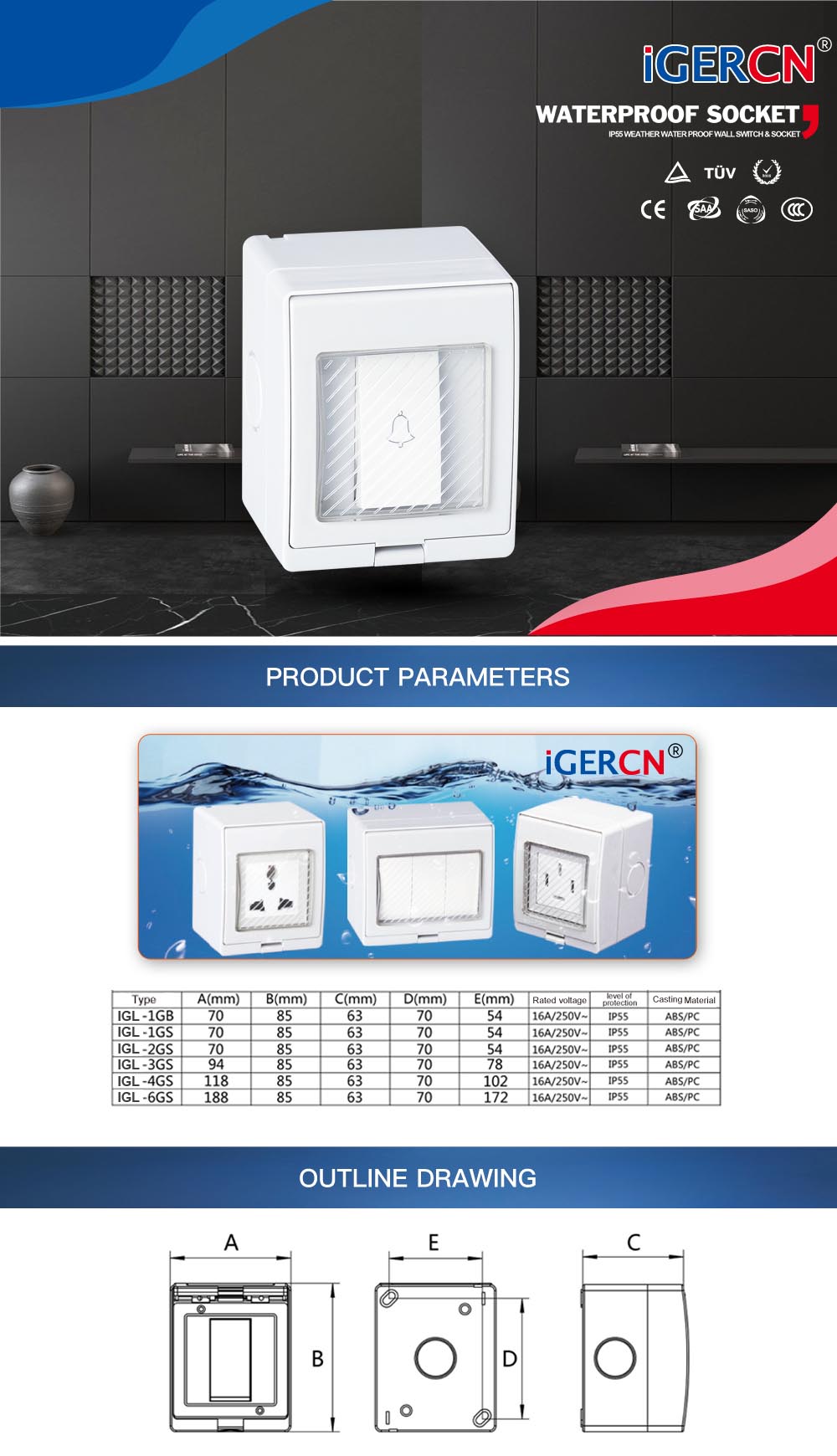 IGL-1GB(1Gang Bell Push Switch 16A/250V~)