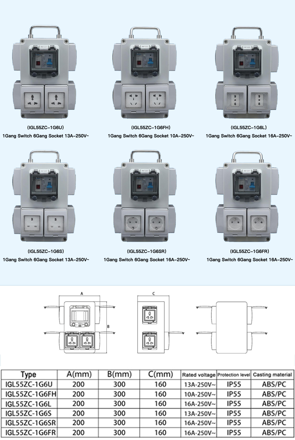 IGL55ZC-1G6L(1Gang Switch 6Gang Socket 16A-250V~)