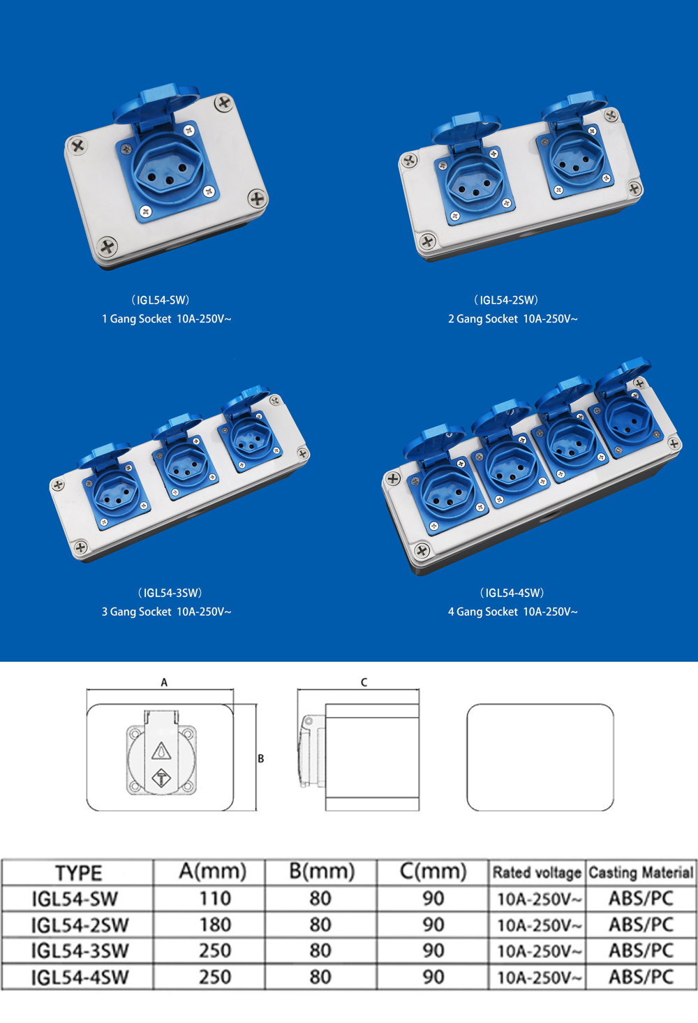 IGL54-3SW(3Gang Socket 10A-250V~)