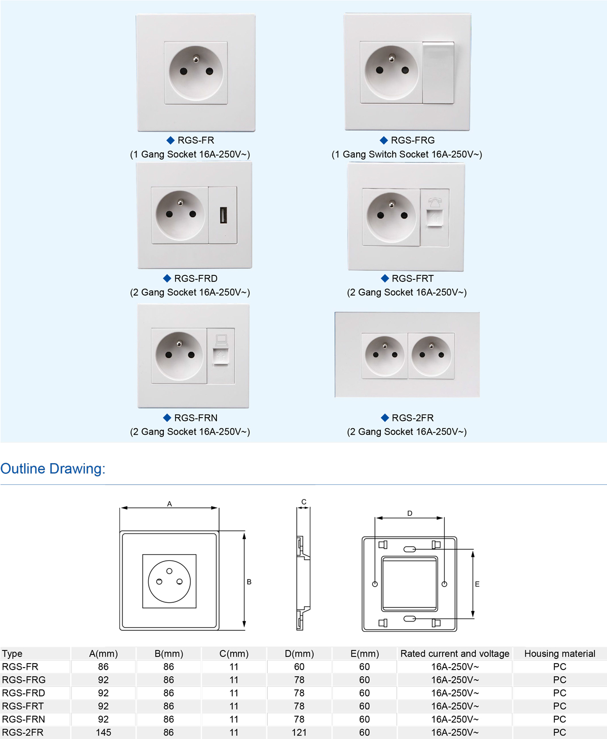 RGS-FRG (1 Gang Switch Socket 16A-250V~)