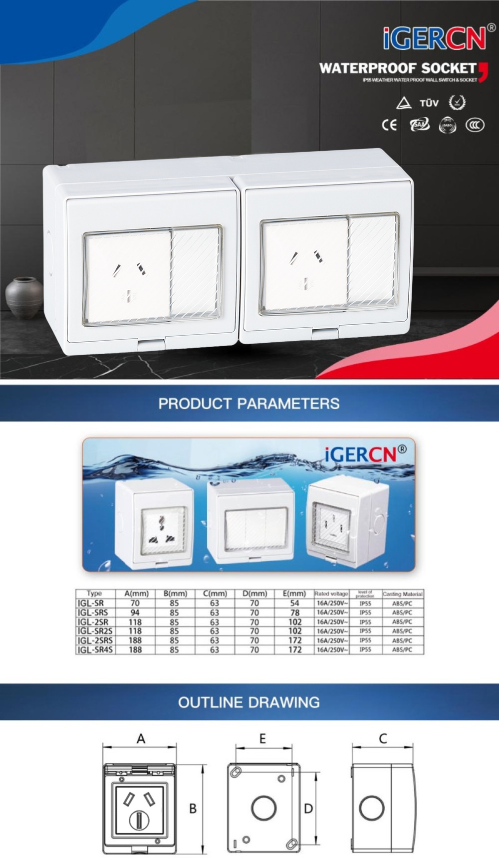 IGL-2AUS(2Gang Switch 2Gang Socket 10A/250V~)