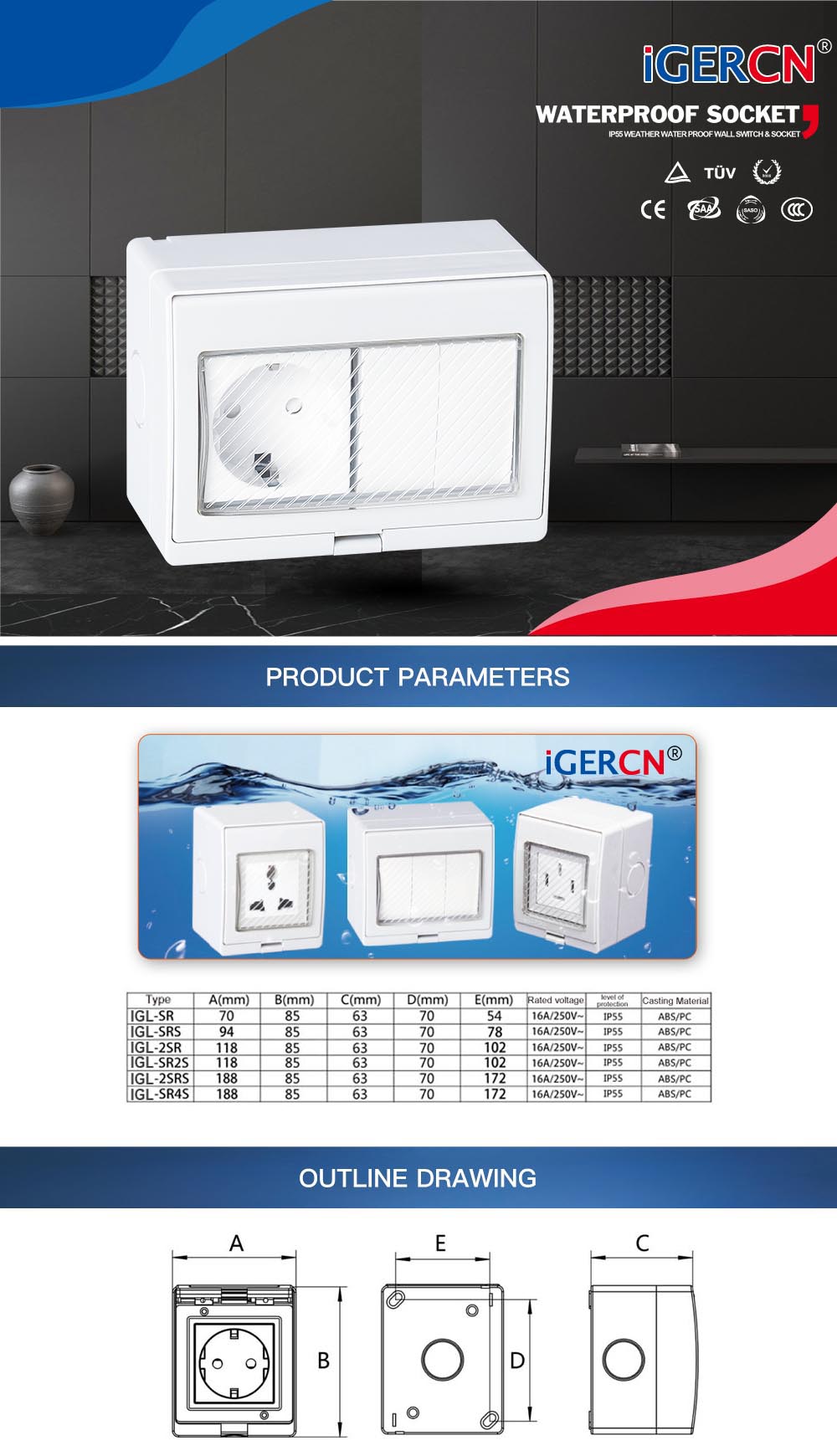 IGL-SR2S(2Gang Switch 1Gang Socket 16A/250V~)