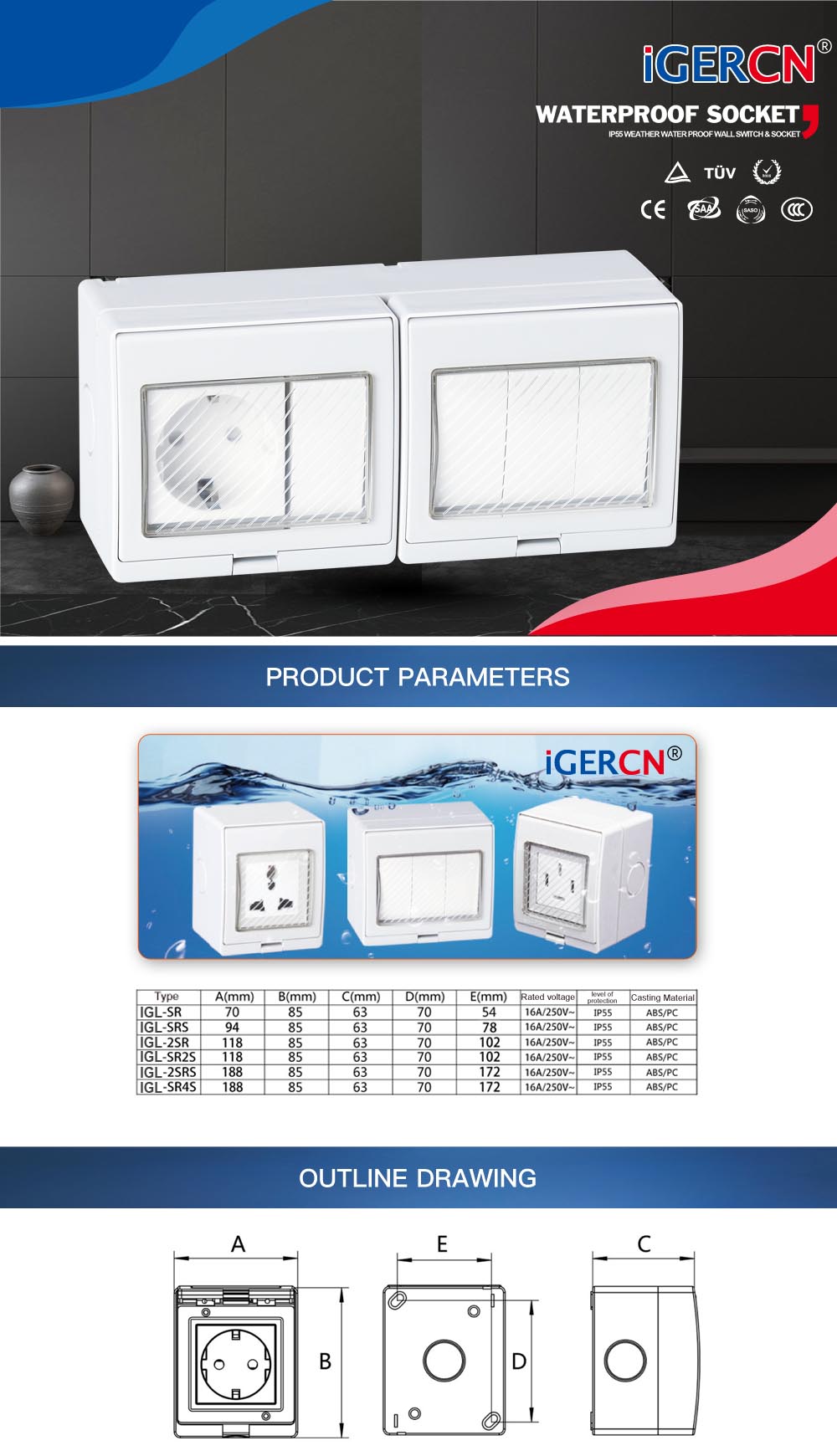 IGL-SR4S(4Gang Switch 1Gang Socket 16A/250V~)