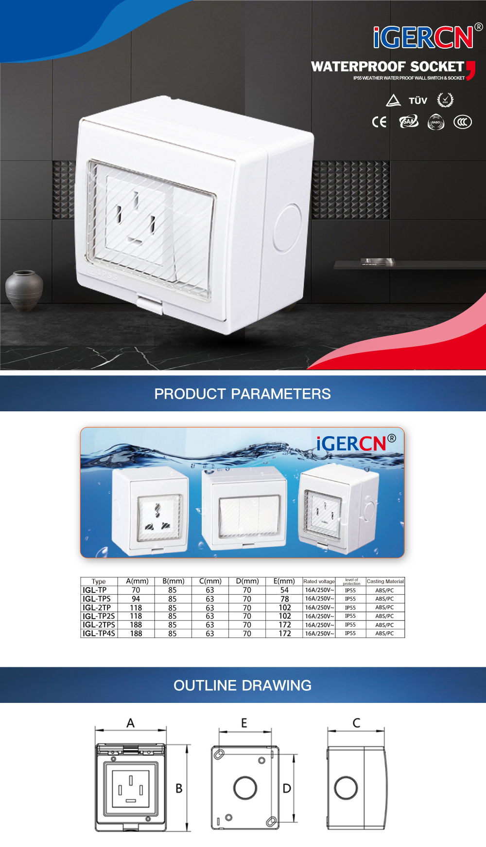 IGL-TPS(1Gang Switch Socket 16A/250V~)