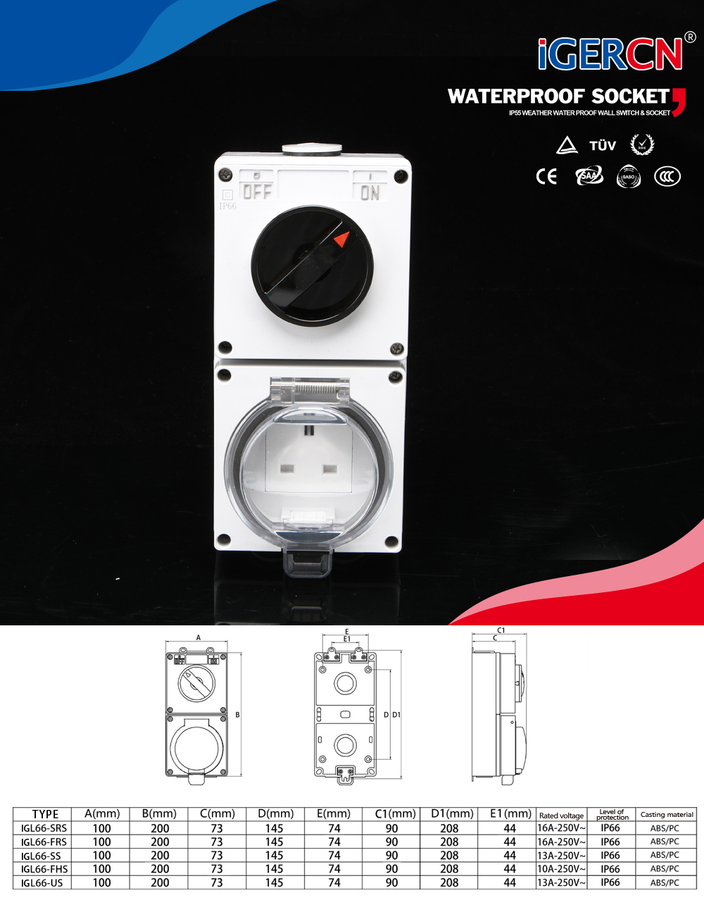 IGL66-SS(1Gang Switch Socket 13A-250V~)