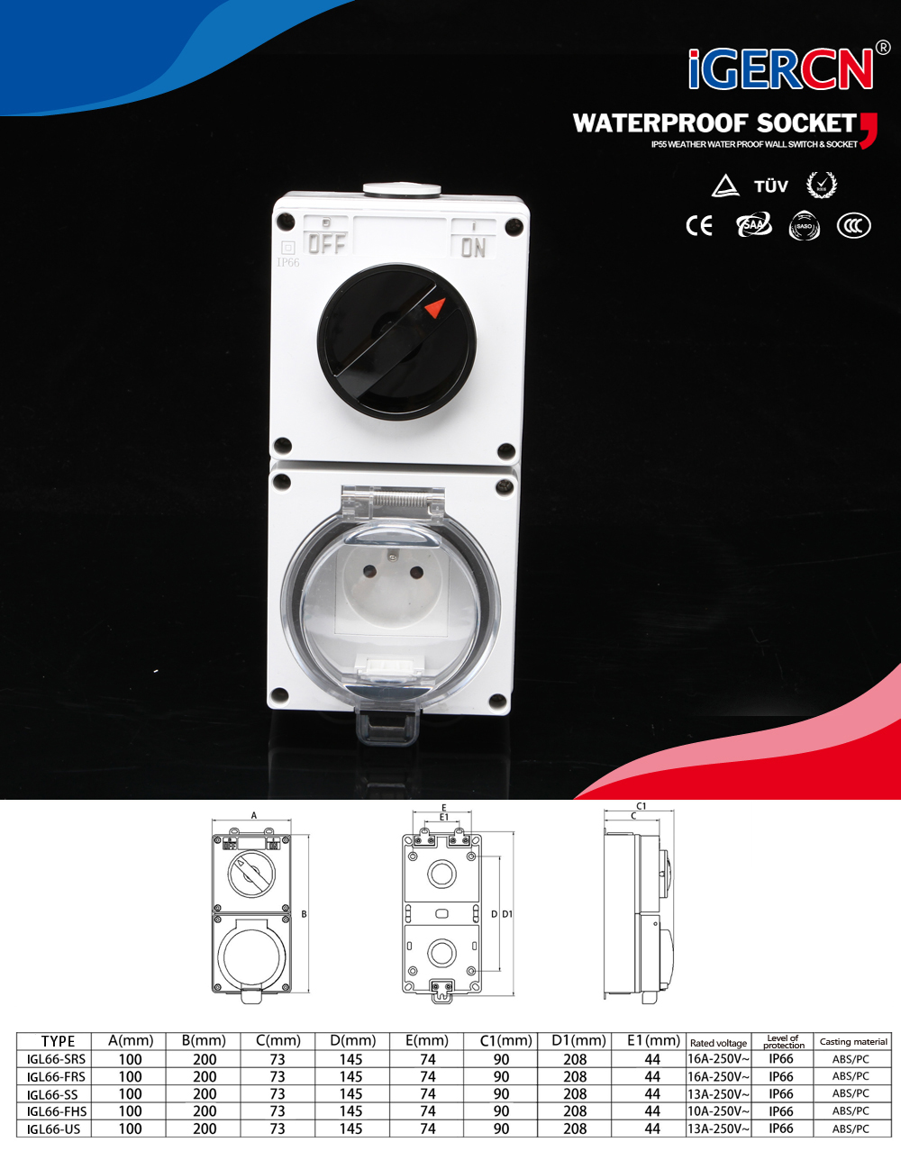 IGL66-FRS(1Gang Switch Socket 16A-250V~)