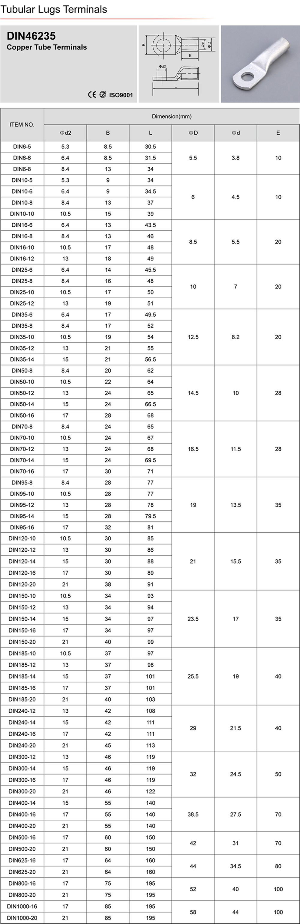 DIN46235 Copper Tube Terminals